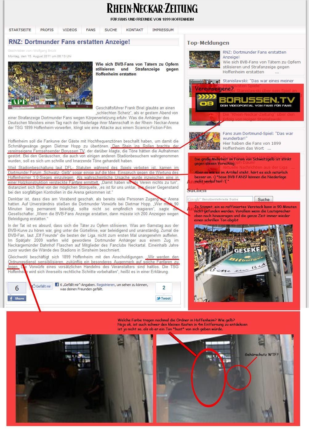 Mal ganz zu Schweigen davon, dass solche Teile während eines Spieles eh verboten sind. Und die Aussage von Vereinsseite, dass die nix davon wussten, ist doch lächerlich. Da sitzt neben dem Teil einer auf ner Bank mit Gehörschutz und paar Meter weiter dahinter nen Ordner. Aber die haben nix gewusst ... ja ne is klar