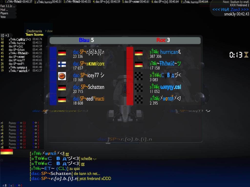 Soooo Jungs, endlich gibts mal wieder en FunWar bei dem wir uns richtig austoben können. Gegner sind, zum zweiten Mal ToY, gegen die wir schonmal einen .. joaa recht lustigen Funny hatten Lest euch den Bericht von Lolo (der übergeil ist ) durch, dann wisst ihr was ich mein. Von den alten "FunnyDrivern" bin ich wohl der letzte überlebende ... der Rest scheint sich wortwörtlich totgelacht zu haben ToY ist jetzt in komplett neuer Besetzung, alle alten Deppen ( ) sind nicht mehr dabei und allzu schlecht scheinen sie nicht mehr zu sein (erster War 45:5 für die FunkyFreaks ). Ich hab mir jetzt einfach mal die Dreistigkeit rausgenommen die Maps selbst auszusuchen, weil wir sonst wieder Tage/Wochen/Monate disskutiert hätten welche wir nehmen Sind alles Maps aus den letzten Wars, über eine wird sich Lolo freuen der dann auch mal wieder auf "Gaydium" ran darf Mal en paar Details: Teams: 5 vs. 5 Modus: TeamRounds Maps: 5 Maps pro Team Termin: 01.08.2009 - 19Uhr Server: dac-SP Welcher auch immer ![]() Fahrer dürfen zwischen den Maps gewechselt werden! Zuletzt geändert von killervirus | Userzuweisungen Teilnahme Ersatzbank | ||||||||||||