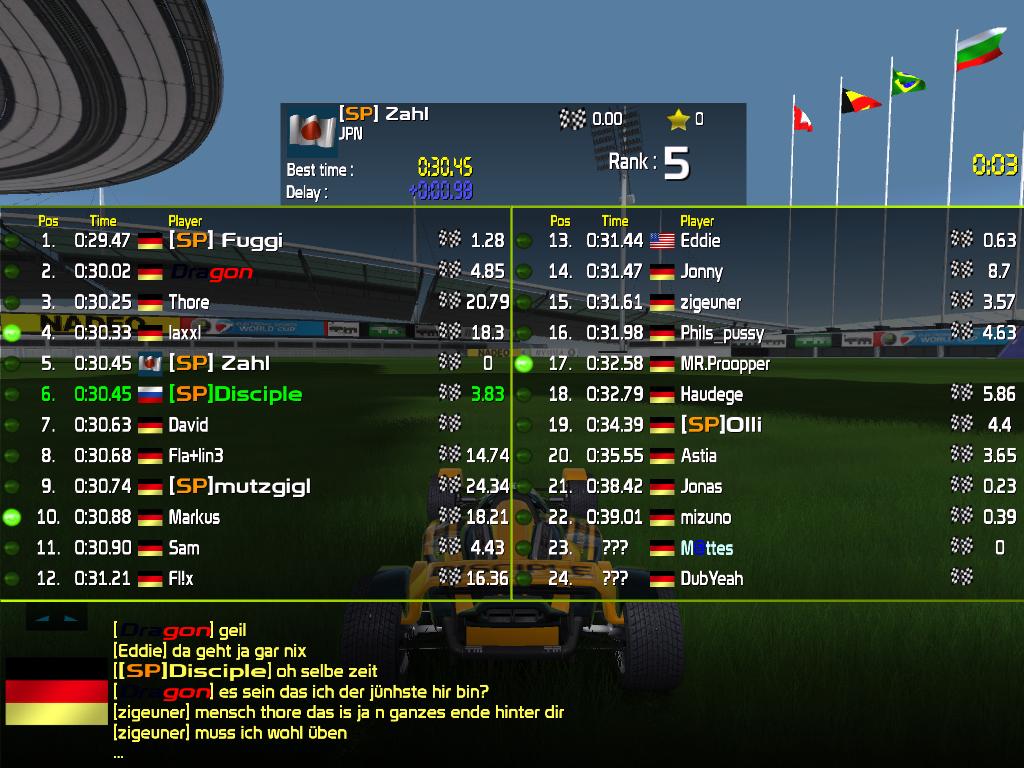 Ich mache mal den Anfang mit einem Screeni, der mir bei einer Multistrecke von "S-Dogg" auf dem Spieleplanet Server passiert ist. Ich bin zu weit gesprungen und bin außerhalb der Spielfeldfläche auf dem "Stadionparkplatz" gelandet .