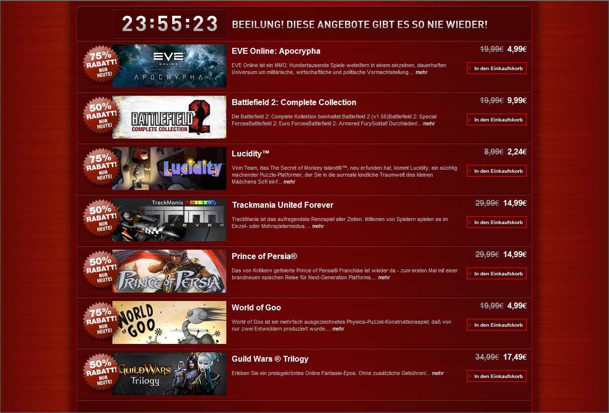 Neue Angebote, gültig bis morgen 17:00 Uhr!