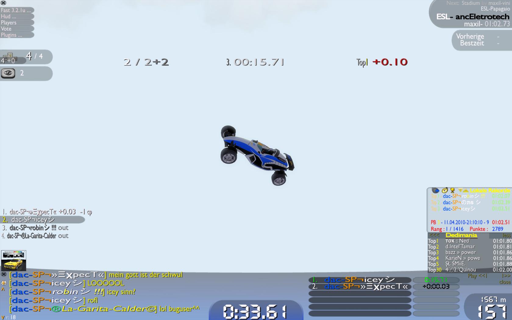 Am geilsten letztes Jahr in der Messe in Stuttgart... Xaorn, Marci und ich am TMNF zocken an einem PC und um uns stehen alle rum und sehen den Bug, da haben alle geguckt wie blöde.