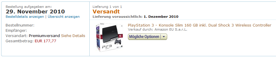 1.) PS3 mit Controller 160GB, + CoD BlackOps (ProMarkt) 339,-