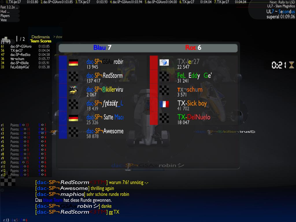 | Sooo jetzt auch mal inoffiziell der erste offizielle Termin der UL7 Saison. Die Gegner stehen noch nicht fest, allerdings stehen mit Bay, Rally und Stadium die Mappen schon fest. Jene sind auf dem Server, wer sich zum Termin anmeldet, kann außerdem mit seinen Replays wie gewohnt protzen ![]() Ich bin da, werde müde sein und nicht trainiert haben. Nun ist die Frage: Wer fährt und wer fährt Stadium? ![]() Zuletzt geändert von killervirus | Userzuweisungen Teilnahme Abgemeldet |